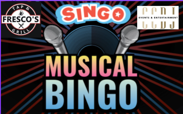 Thirsty Thursdays continue at Fresco’s with Singo Music Bingo!! Join us for a fun night out, matching song titles and singing along to the music played by our DJ extraordinaire….Chris Cooper (CCDJ Events)!! Spin the wheel of fortune for prizes to be won!