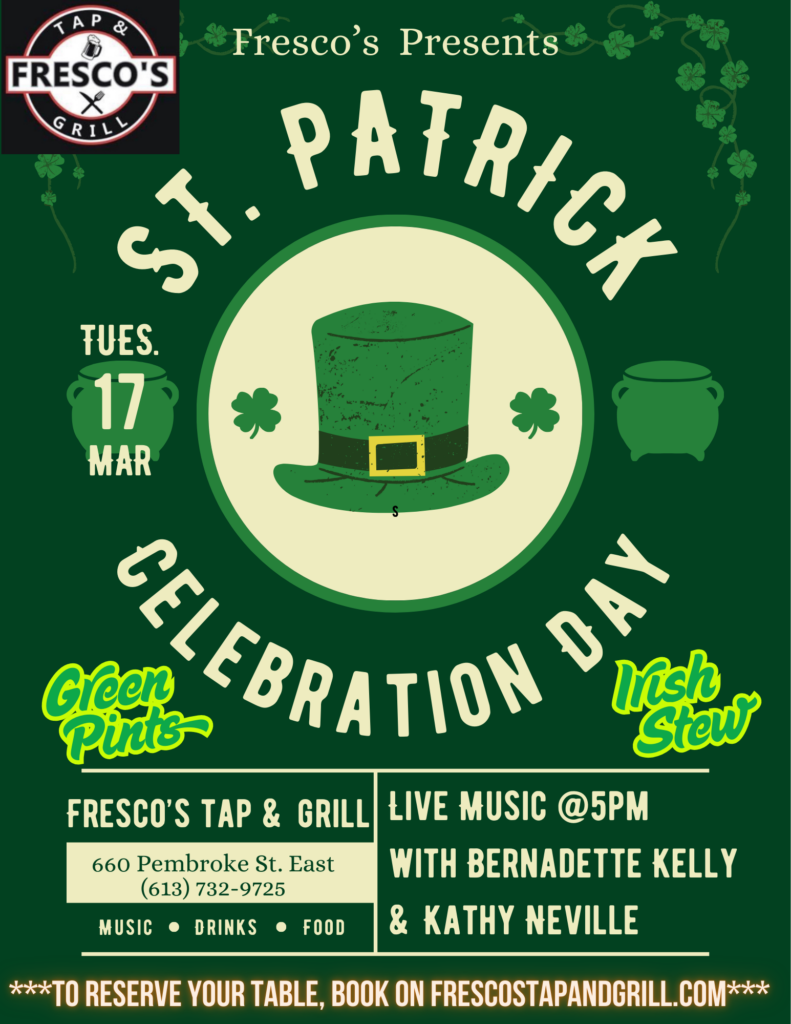 Tues. 03/17 [5pm] St. Paddy’s Day LIVE Music with Bernadette Kelly & Kathy Neville Read More »