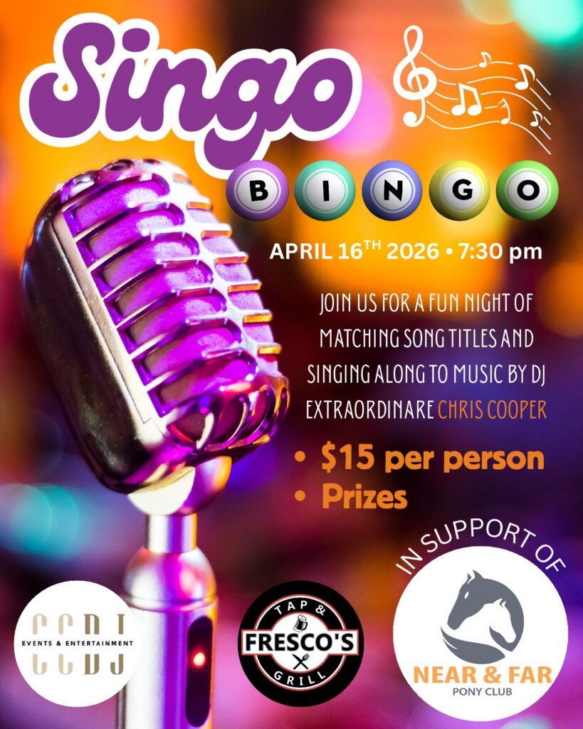 Have fun matching song titles played by our DJ, Chris Cooper! Book a table, invite your friends! 50/50 draw and Raffle Prizes!